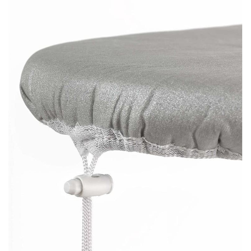 Piemerojams visa veida standarta gludināmiem dēļiem. Viegli nostiprināms. Auduma virsma metalizēta. Nevainojami gludināšanas rezultāti iespējami vienīgi ar gludināmā dēļa pārvalku, kas izgatavots no augstas kvalitātes materiāliem. 1.Metalizēts audums. 2.Metāla pamatne atstaro karstumu ar dubultu efektivitāti. 3.Mikro-perforēts gludināšai ar taviku. 4.Porolona slānis nodrošina labāku tvaika cirkulāciju. Instrukcija: uzlikt pārvalku uz gludināmā dēļa ar apdrukāto pusi uz augšu. Vispirms uzlikt aizmugures daļu, tad pāvilkt pārvalku pāri gludināmajam dēlim un nostiprināt to cieši, savelkot auklu un nofiksējot to ar skavu. 100% kokvilna.