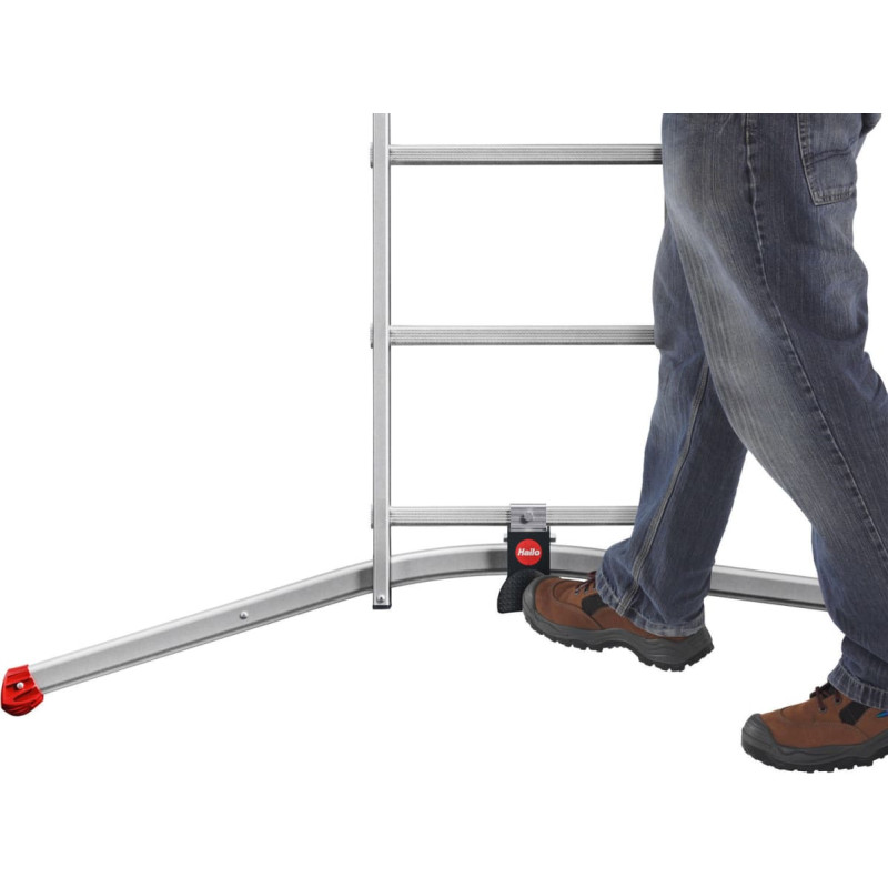 S100 ProfiLOT 3 daļīgas alumīnija kombinētās kāpnes ar LOT sistēmu – sistēma, kas palīdz kāpnes izvietot uz nelīdzenas virsmas (līdz pat 15cm); Iestata ar īpaši izveidot pedāli ar kājas palīdzību.