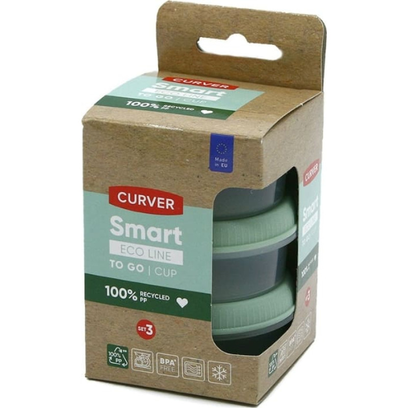 Curver Pārtikas trauciņi 3gab. Sauce Cups apaļi 3x0,08L Smart Eco To Go Ø7x10cm maigi zaļi