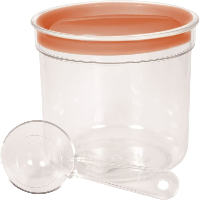 Konteiners ir izgatavots no augstākās kvalitātes polistirola( PS/5) un ir pielāgots nefasētu produktu uzglabāšanai. Ideāli piemērots sāls, cukura, magoņu sēklu, rīsu, brokastu pārslu, makaronu un citu lielapjoma izstrādājumu uzglabāšanai. Trauku var mazgāt trauku mazgājamā mašīnā. Krāsa: spilgti zila, zaļa, pelēka (krāsu izvēlaties pasūtot) Izmērs: 12.2 x 13 x 13cm