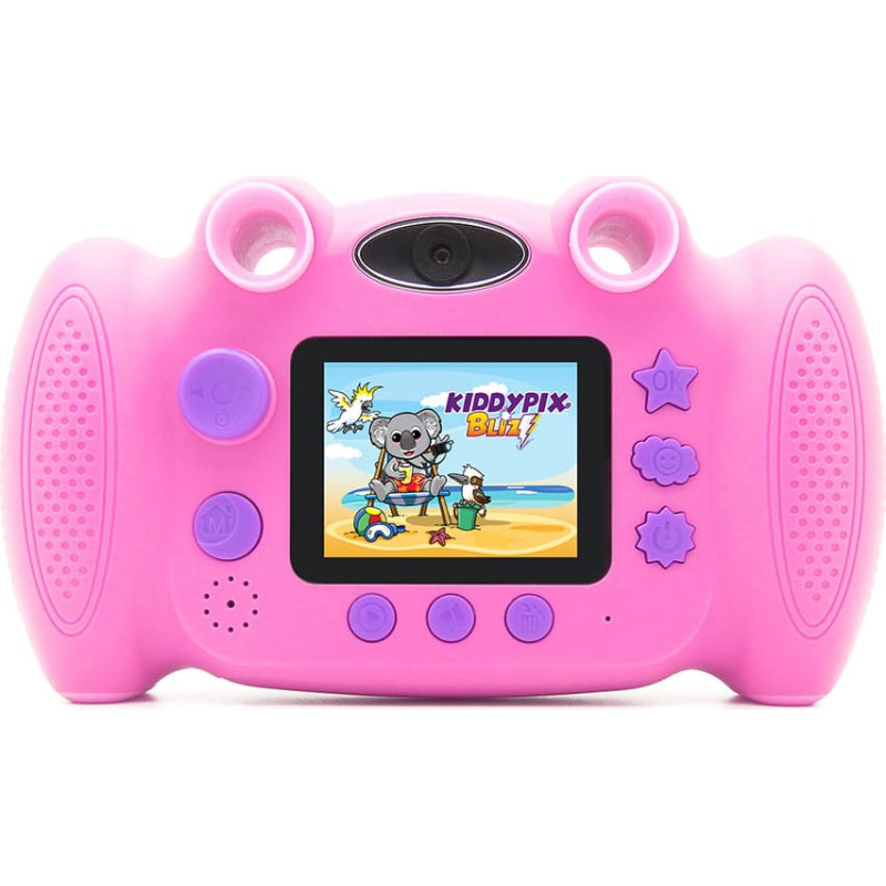 Priekinė kamera nuotraukoms ir vaizdo įrašams „Selfies“ galinė kamera Komplekte yra apsauginis kietas dėklas 20 nuotraukų rėmelių ir efektų 6 integruoti žaidimai Garso įrašymas ir su penkiais garso efektais 4x skaitmeninis artinimas 2 colių (5 cm) didelis ekranas Jutiklio 2MP priekinė kamera / 0,3 MP galinė kamera Laikmatis Blykstės funkcija Integruotas mikrofonas Integruotas garsiakalbis Palaiko iki 32 GB talpos „Micro SD“ korteles (kortelė neįeina)   Techninės specifikacijos Jutiklio 2MP priekinė kamera / 0,3 MP galinė kamera Nuotraukų raiška 8M (interpoliuojant) 5M (atliekant interpoliaciją) 3M (interpoliuojant) 2MP 1MP Vaizdo raiška 640x480p 30 kadrų per sekundę 320x240p 30 kadrų per sekundę Dvigubas objektyvas Priekinė kamera nuotraukoms ir vaizdo įrašams Užpakalinė kamera, skirta selfiams Ekranas: 2,0 colių / 5 cm Skaitmeninis artinimas: 4x Nuotraukų rėmeliai: įmontuota Žaidimai: įmontuotas Garso efektai: įmontuotas Išlaikymas: automatinis Žiūrėjimo kampas: 110 ° Išorinė atmintis: suderinama su „microSD“ kortelėmis iki maks. 32 GB (neįskaičiuota) Mikrofonas: įmontuotas Garsiakalbis: įmontuotas Laikmatis: Įjungta / Išjungta / 10 sek. Sąsaja: „Micro USB“ Maitinimo šaltinis: 4xAA (neįskaičiuota) Kameros matmenys: 145 x 92 x 40 mm, 175 g