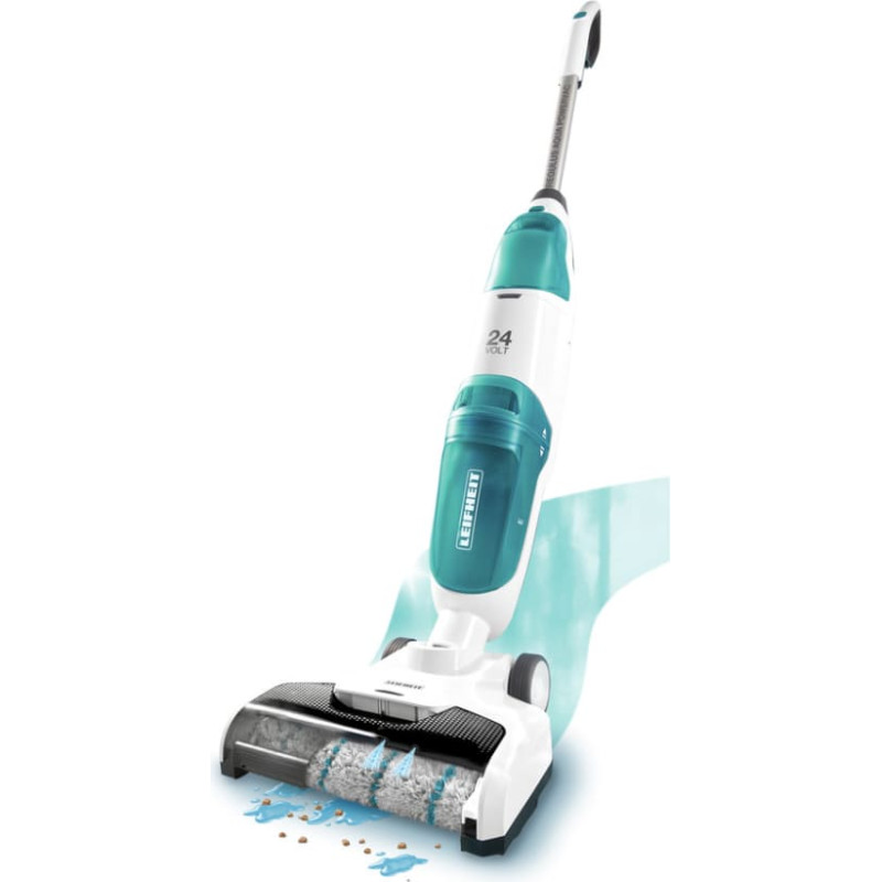 Sūkšana, slaucīšana un žāvēšana vienā - to padara iespējamu Leifheit Regulus Aqua PowerVac Pro akumulatora darbināmais putekļu sūcējs. Tas apvieno divas darbības un ietaupa jums laiku. Bezvadu putekļu sūcējam ir Micro-Duo slaucīšanas pārvalks, lai nodrošinātu profesionālu tīrīšanu. Ar Leifheit Regulus Aqua PowerVac Pro iespējama divu veidu tīrīšana - Eco un Turbo režīms. Akumulatora putekļu sūcējam ir spēcīga 24 V Li-ion akumulatora baterija. Tas nozīmē, ka Regulus Aqua PowerVac Pro ir vienmēr ērti pieejams grīdu uzkopšanai. Akumulatora putekļu sūcēja baterijas darbības ilgums ilgst līdz 26 minūtēm. Ņemot vērā to, ka akumulatora putekļu sūcējs ir īpaši viegls - tikai 3,5 kg, un tam ir plāns, manevrējošs dizains, tas ir viegli lietojams pat šaurās telpās. Pateicoties 2-tverņu sistēmai, ūdens tvertnē vienmēr ir svaigs ūdens mazgāšanai. Ierīces tīrīšana ir īpaši viegla pateicoties paštīrīšanas funkcijai, kas garantē putekļu sūcēja tīrību. Izmērs: 91.5 x 23.2 x 34.1 cm