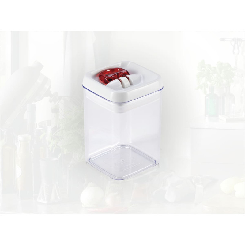 Optimālai jūsu sauso produktu uzglabāšanai - gaisa un mitruma necaurlaidīgs trauks. Viegli atvērt ar vienas rokas darbību, pateicoties patentētai atvēršanas sistēmai. Sausie produkti ilgi saglabā svaigumu un aromātu. Trauki ir izturīgi un piemēroti vietas taupīšanas nolūkos, lai tos liktu vienu virs otra. 3 gadu garantija.