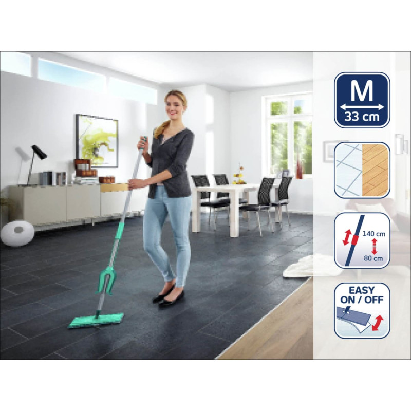 Liefheit Picobello M grīdas birste Žilbinošī tīras grīdas ar Leifheit Picobello M grīdas birsti - Picobello M grīdas birste ir ar praktisku un ērtu lupatas izspiešanas mehānismu. Lai izspiestu lieko ūdeni no lupatas jums nenāksies nedz noliekties, nedz lupatu ņemt rokās. Visu varēsiet paveikt ar prakstisko izspiešanas mehānismu - speciāli izstrādātu pārsegu, kuru nolaižot uz leju, tas salocīs birstes pamatni tādējādi izspiežot no lupatas lieko mitrumu. Birstes lupatas sastāvs ir izgatavots no 80% poliestera un 20% poliamīda, un tai piemīt augsta absorbēšanas spēja. Birstes lupata ir universāla, tā derēs visa veida grīdu segumiem