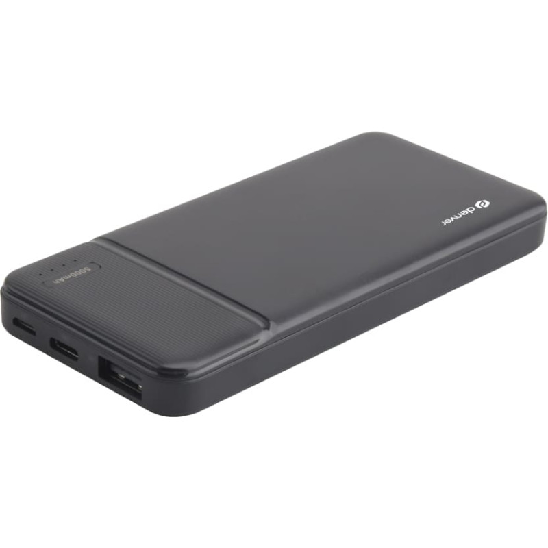 5000 mAh ličio polimeras Įkraunama per „MicroUSB“ arba „USB-C“ (pridedamas „MicroUSB“ laidas) Įvestis: 5V 2A Išvestis: USB 5V 2A (10W) Su LED talpos indikatoriais Dydis: 12,20 (plotis) x 5,60 (d) x 1,30 (aukštis)