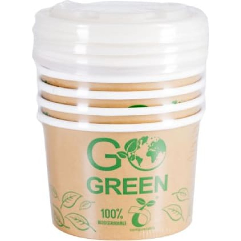 GoGreen pārtikas trauki ir lieliski piemēroti karstam un aukstam ēdienam. Šī ir dabai draudzīga alternatīva tradicionālajam plastmasas iepakojumam. Produkts izgatavots no augu bāzes cietes un ir 100% kompostējami. Pieejami 3 izmēru konteineri. Tilpums: 230 ml Iepakojumā 5 trauciņi. GoGreen ēdiena trauki ir izgatavoti no dabīgiem atjaunojamiem resursiem, un tos var komerciāli kompostēt. Atbilst Eiropas standartiem EN 13432 prasībām, kas paredz, ka izstrādājumiem pilnībā jāsadalās, neatstājot nekādas kaitīgas atliekas.