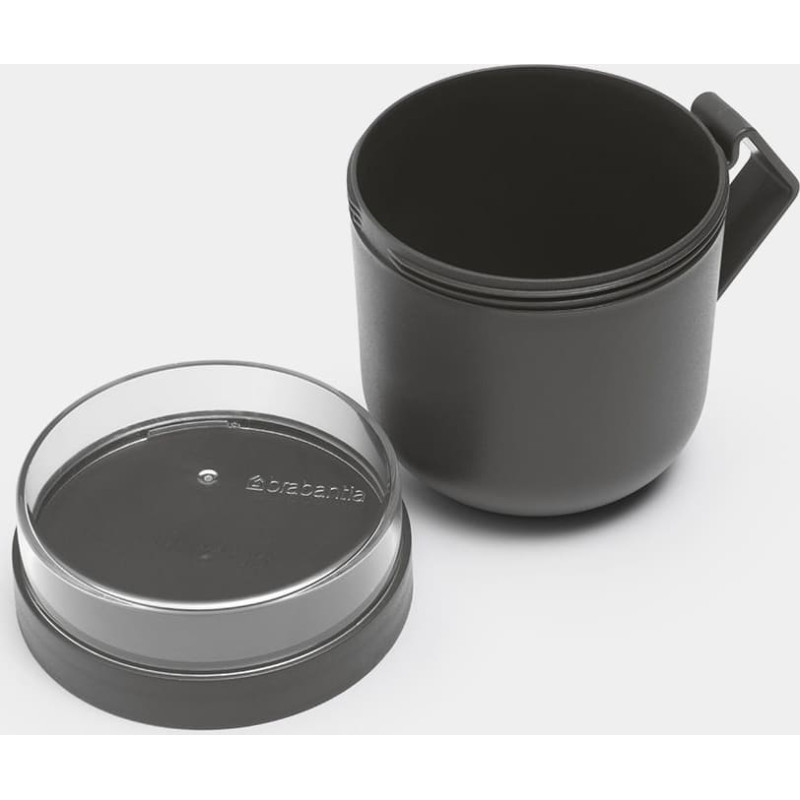 Ar Brabantia Make & Take zupas krūzi ņemiet līdzi savu pagatavoto zupu uz biroju vai izbraukumos, neuztraucoties par to, ka zupa var izlīt vai iztecēt laukā. Šajā zupas traukā var ietilpt līdz 600 ml jūsu iecienītā buljona, un tas ir arī lietojams, lai zupu atkārtoti uzsildītu mikroviļņu krāsni. Turklāt šai krūzei ir pieliekams atsevišķs konteiners, kas nodrošina, ka sastāvdaļas ir nošķirtas un svaigas.