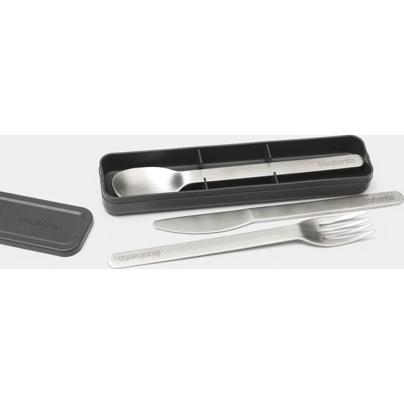 Pārtrauciet lietot vienreiz lietojamās plastmasas galda piederumus, atrodoties ceļā, izmantojiet šo atkārtoti lietojamo Brabantia Make & Take galda piederumu komplektu. Kvalitatīvs nazis, dakša un karote no augstas kvalitātes nerūsējošā tērauda. Viegli tīrāms, mazgājams trauku mazgājamā mašīnā un droši iepakots kompaktā kastītē. Komplekts, ko izmantot atkārtoti ilgu, ilgu laiku!