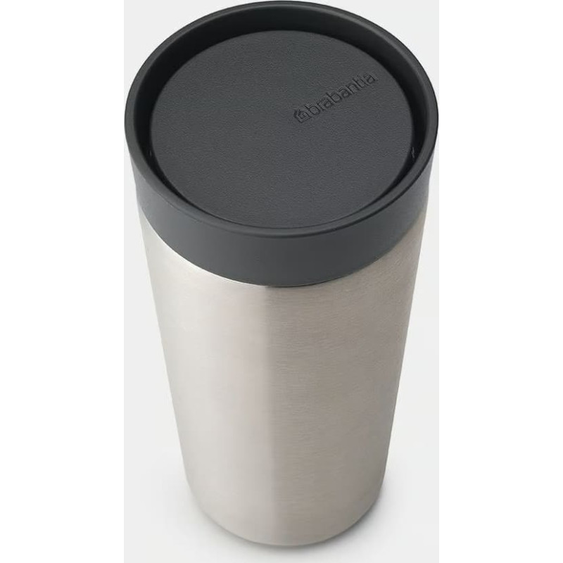Izbaudiet savu karsto vai auksto dzērienu jebkurā vietā ar šo vidēja izmēra Brabantia Make & Take izolēto krūzi. Šajā ceļojumu termosa krūzē ir līdz 360 ml jūsu iecienītākā dzēriena un tā saglabā siltumu līdz 6 stundām vai aukstu līdz 8 stundām. Viedais klikšķis vāks viegli atveras un aizveras ar vienu roku, un jūs no tā dzerat tāpat kā no jebkuras citas krūzes. Tas viegli iestiprinās jūsu mugursomas sānu kabatā vai automašīnas krūzes turētājā. Un neuztraucieties par izšļakstījumiem – šī krūze ir 100% necaurlaidīga. Esiet ceļā, neatkarīgi no tā, kāds dzēriens krūzē ir iepildīts, cik liels daudzums un kāda ir dzēriena temperatūra.