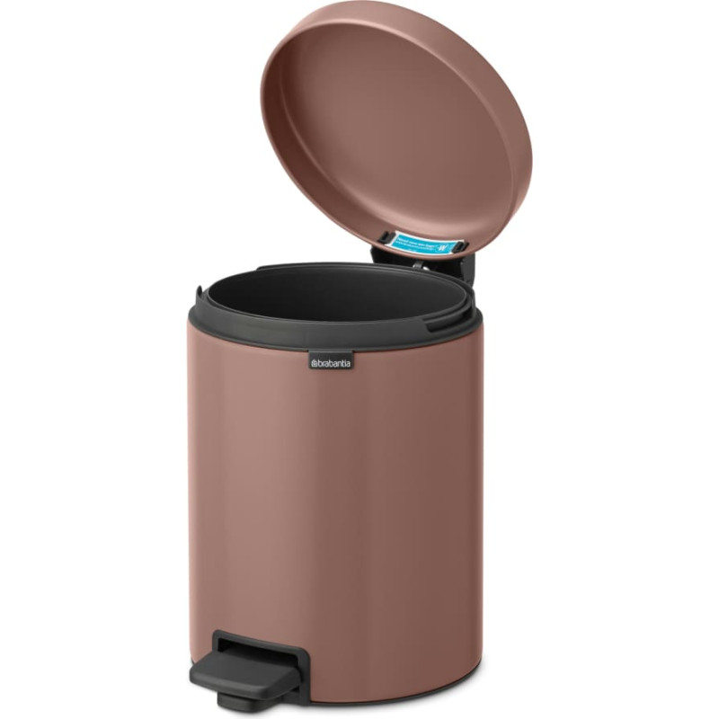 Brabantia Pedal Bin NewIcon 5 litri ir ne tikai stilīga un higiēniska atkritumu tvertne, bet arī ļoti kvalitatīva un izturīga. Izturīgs un droša pateicoties neslīdošajai pamatnei. Vāks nelaiž cauri smakas, viegli aizveras un atveras, piespiežot atkritumu tvertnes pedāli ar pēdu. Dizaina elements, kas lieliski iederas jūsu vannas istabā, tualetē vai bērnistabā – vai jebkurai citā telpā, kurā var izmantot lielisko mazo atkritumu tvertni!