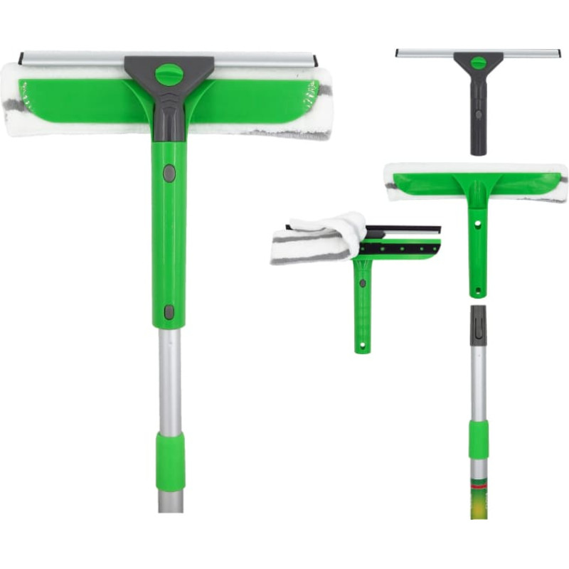 Birstes platums 40cm. Izvelkams teleskopisks kāts līdz 180cm. Viegli nomaināma rezerves lupata pateicoties Velcro sistēmai. Viegli noņemama logu tīrāmā gumija.