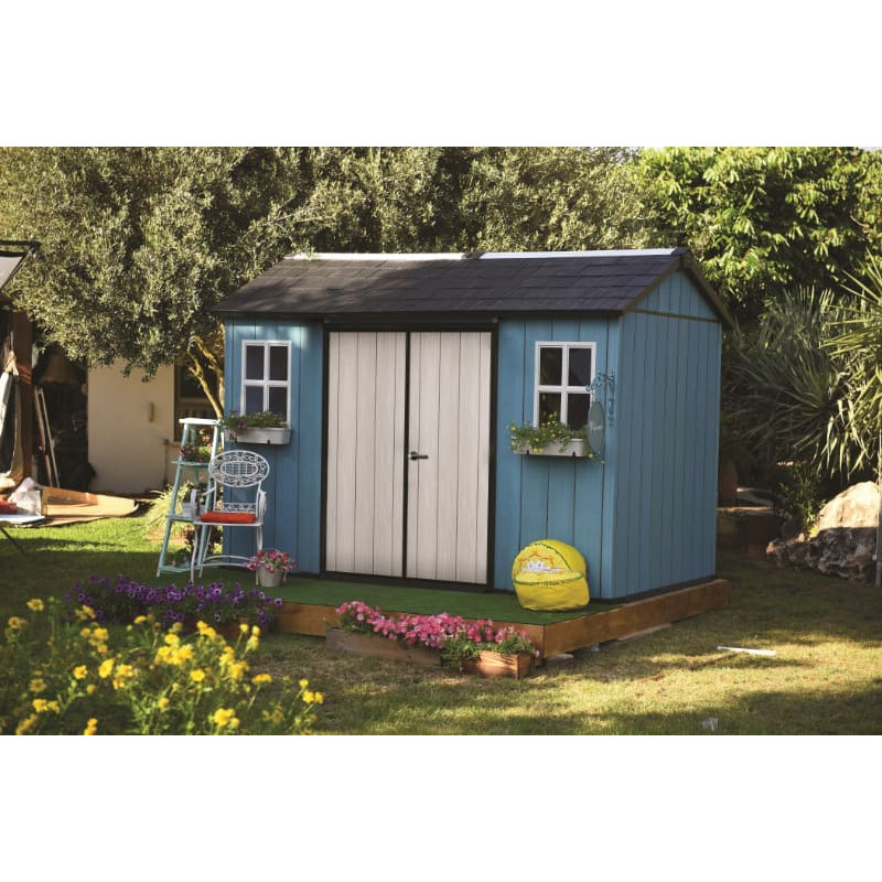 Praktisks šķūnītis Oakland 1175. Tajā var ietilpt ne tikai instrumenti un dārza piederumi, bet arī pļāvējs vai kāpnes. Tā dubultsienu paneļi ir izgatavoti no unikāla sveķu kompozītmateriāla, kas veido ļoti kvalitatīvu materiālu, kas ir izturīgs pret nelabvēlīgiem ārējiem faktoriem. Pamatīgs jumts un stiprināta tērauda konstrukcija garantē tās izturību daudzus gadus. Tās neapšaubāmā priekšrocība ir spēja krāsot šķūnīti jebkurā sev piemērotā krāsu paletē. Super izturīgs, izgatavots no sveķu kompozītmateriāla, un stingrs ar dubultu sienu struktūru un tērauda stiprinājumu. Novatoriskās DUOTECH ™ sienas, kas imitē koksni, piešķir krāšņumu. DUOTECH ™ sienas ir viegli krāsojamas, padarot to viegli pielāgojamu ainavai un dizainam. Īpaša apkope nav nepieciešama, pateicoties laika apstākļu izturīgai konstrukcijai. Aprīkots ar dubultdurvīm, jumta kore ar caurspīdīgu plastikātu dienas gaismai un Viktorijas stila diviem logiem. Šķūnītim ir pietiekami augsti griesti, lai pieaugušais varētu ērti pārvietoties. Viegla paneļu montāža. Piemērots smagāko priekšmetu (zāles pļāvēju) uzglabāšanai grīdas izturības dēļ. - Dubultās sienas ar tērauda konstrukciju, izturīgas pret nelabvēlīgiem laika apstākļiem