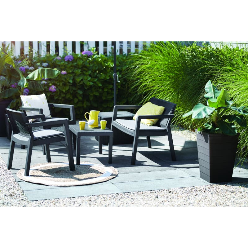 Emily Patio mēbeļu lielā priekšrocība ir to ergonomā forma, kas nodrošina pilnīgu relaksāciju tajos pat bez sēdekļu spilveniem. Komplektā ietilpst divi atzveltnes krēsli, divvietīgs dīvāns un kafijas galdiņš. Jūsu acis nespēs vien beigt apbrīnot šī mēbeļu komplekta eleganci, izturību un praktiskumu. Pārdomāts dizains, viegla un ātra montāža, kurai nav nepieciešami instrumenti. Ērtība un prieks savijas vienā, kad montējat šo komplektu. Mēbeles ir atmosfēras iedarbības un UV starojuma izturīgas. To montāža ir viegla un ātra. Mēbeļu kopšana neprasīs piepūli, jo tās ir viegli kopjamas. *Mēbeles nav ieteicams izvietot ārtelpās, ja temperatūra ir zemāka par 0°C vai pārsniedz 40 °C