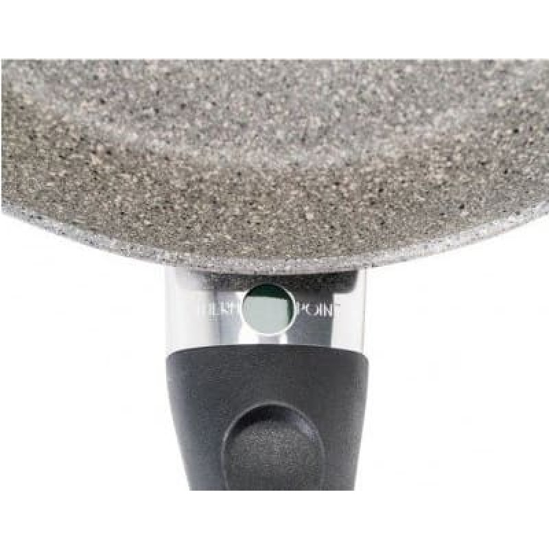 Ballarini Ferrara - lieliska gatavošana ar augstas kvalitātes pannām. Piecu slāņu nepiedegošais pārklājums ļauj cept, vārīt vai sautēt bez taukvielu pievienošanas. Pret skrāpējumiem izturīgais pārklājums ļauj izmatot pat metāla gatavošanas piederumus. Lieliski piemērota visām plītīm, ieskaitot indukciju. Karstumizturīgā bimetāla pamatne Radiant no tērauda un alumīnija ar cietu alumīnija kodolu saglabā siltumu un vienmērīgi sadala to, lai panna ātri uzkarstu. Thermopoint® tehnoloģija - īpašs punkts uz ergonomiskā plastmasas roktura, kura krāsa mainās atkarībā no temperatūras. Panna sāk silt - termopunkts sāk mainīt krāsu no zaļas uz sarkanu. Kad tas kļūst sarkans, panna gatava lietošanai un var samazināt liesmu, lai gatavotu, nepārkarsējot pannu, līdz ar to pannas klājums kalpos ilgāk, jo nav karstuma šoka, kas bojā klājumu. Īpaši izturīgs pretpiedeguma piecu slāņu pārklājums ir pastiprināts ar minerālu daļiņām, lai perfekti pagatavotu ēdienu. Alumīnija korpuss ātri uzsilst. Ekskluzīvi un izturīgi bakelīta rokturi ir ergonomiski, ar nerūsējošā tērauda vidu, bet no ārpuses ar patīkamu mīkstu pārklājumu, kas ir karstumizturīgs līdz 200°C. Diametrs: 28cm Augstums: 5cm Lietošana krāsnī: līdz 160C Saderība ar siltumavotiem: indukcija - gāzes - elektriskie Thermopoint® siltuma indikators Ražots Itālijā Var mazgāt trauku mazgājamā mašīnā