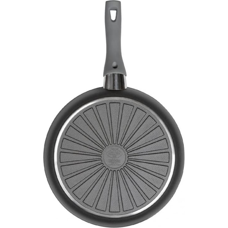 Lieliska enerģijas efektivitāte, pateicoties uzlabotai siltuma absorbcijai un līdz ar to izcilai siltuma indukcijai. Pannas pamatne RADIANT. Tā ir īpašas staru formas indukcijas pamatne, kas patentēta Eiropā, ko izstrādājis BALLARINI. Šī īpašā indukcijas pamatne ļoti ātri un vienmērīgi sadala siltumu, kas nodrošina lielisku gatavošanas rezultātu, un pannas pamatnes stabilitāti. Pannai ir izstrādāts īpaši ciets, četrslāņu nepiedegošs pārklājums, kurā cietības un izturības nodrošināšanai ir iestrādātas dabīgas dimanta daļiņas. KERAVIS DIAMOND – īpaši ciets un izturīgs četrslāņu pārklājums Sarkanā/ Zaļā punkta indikators: Sarkans – karsts; gatavs lietošanai; Zaļš – atdzisis; drošs pieskārieniem, mazgāšanai. Neuzkarstošs rokturis Pannas klājums nesatur PFOA, niķeli un smagos metālus Īpaši biezs alumīnijs, kas ātri uzkarst Īpaši liela pamatnes indukcijas zona Ražota Itālijā Saderība ar siltumavotiem: indukcijas - gāzes - elektriskie - keramikas - halogēna