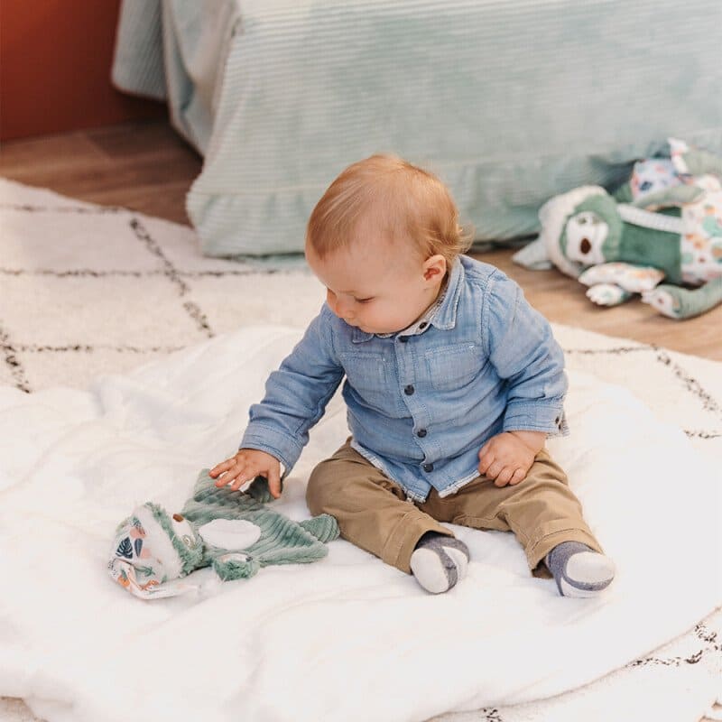 Labai minkšta velvetinė Doudou antklodė kūdikiams. Skalbiant mašina - geriausiai 30 laipsnių temperatūroje. Išmatavimai: 22x8x28 cm. Rekomenduojamas amžius: nuo 0 mėnesių. Kilmės šalis: K.L.R. Pagaminta pagal Prancūzijos dizainą ir užsakymą.