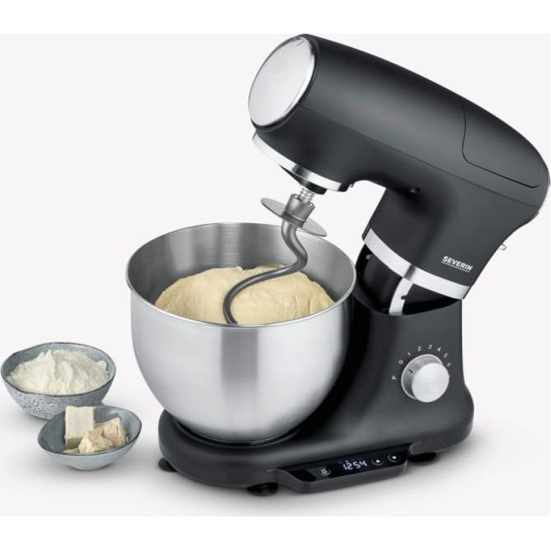 Techniniai duomenys Savybės: Minkymas, maišymas, plakimas Talpa (litrais): 5.5 Galia (vatais): 1000,0 Galios lygiai: 8 Ekranas: LED Laikmatis: Taip Planetinė maišymo sistema: Taip Neslidžios siurbimo kojelės: Taip Apsauga nuo purslų: Taip Atskiros dalys, kurias galima plauti indaplovėje: Taip Jautrus karščiui: ne Belaidis veikimas: ne Kištuko tipas: Euro kištukas Kabelio ilgis (mm): 950,0 Spalva: juoda Matmenys (A x P x G): 35,5 x 38 x 23,5 cm Svoris (g): 6357,0 Pridedami priedai: plokščias plakiklis, mėsmalės priedas, tešlos kablys, kelių smulkintuvo priedas, makaronų priedas, plaktuvas, apsauga nuo purslų su pildymo lataku, stovo maišytuvo priedas