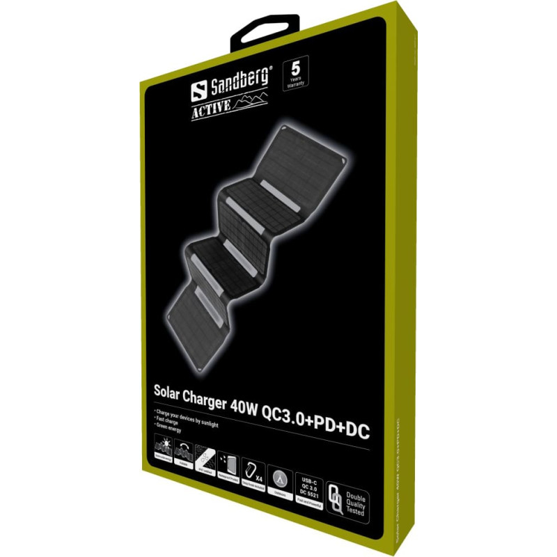 Sandberg Solar Charger 40W yra kompaktiškas saulės baterijų skydelis, pasižymintis dideliu našumu. Sulankstomas saulės kolektorius išsiskleidžia į 6 monokristalines saulės baterijas, todėl bendra galia yra iki 40 W. Skydelio valdymo dėžutėje rasite 3 sparčiuosius prievadus: - USB-A su QC 3.0 palaikymu - USB-C - DC 5521 Tai suteikia jums daugybę jungčių ir optimalų išmaniųjų telefonų, planšetinių kompiuterių, maitinimo blokų ir tt įkrovimo greitį. Pateikiami kabliukai, pavyzdžiui, gali būti naudojami saulės kolektoriui pritvirtinti prie kuprinės, kai keliaujate į nuotykius. Tai žalia energija jūsų įrangai! Techniniai duomenys Saulės baterijos išėjimas: 40W Saulės elementas: monokristalinis, didelio efektyvumo 22% perdavimo sparta Jungtys: 1 x USB-A QC 3.0 lizdas, 1 x USB-C, 1 x DC 5521 USB-C išvestis: 5 V / 3 A (maks. 15 W) USB-A išvestis: 5 V / 3 A, 9 V / 2 A, 12 V / 1,5 A (maks. 18 W) Nuolatinės srovės išvestis: 19 V / 2,1 A (maks. 40 W) Matmenys (išskleistas): 124 x 28,2 x 0,3 cm Išmatavimai (sulenkus): 20,7 x 28,2 x 4,4 cm Svoris: 1,4 kg