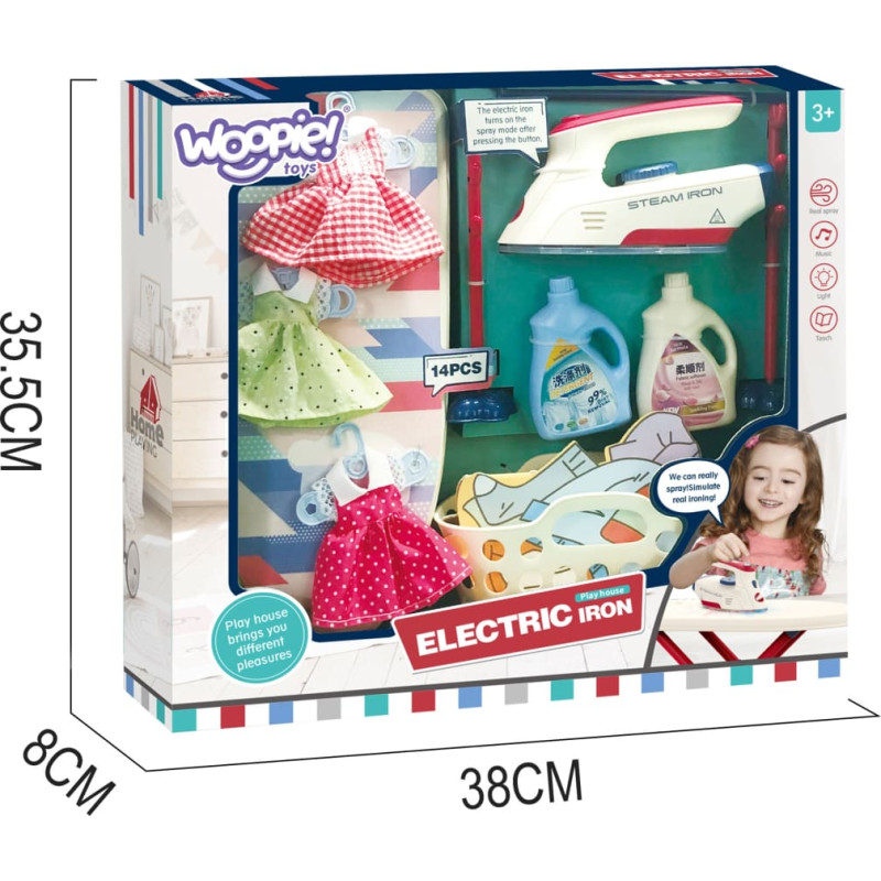 Woopie Zestaw XXL Deska do Prasowania z Żelazkiem Wieszakiem Koszem na Pranie i Ubraniami 14 el.