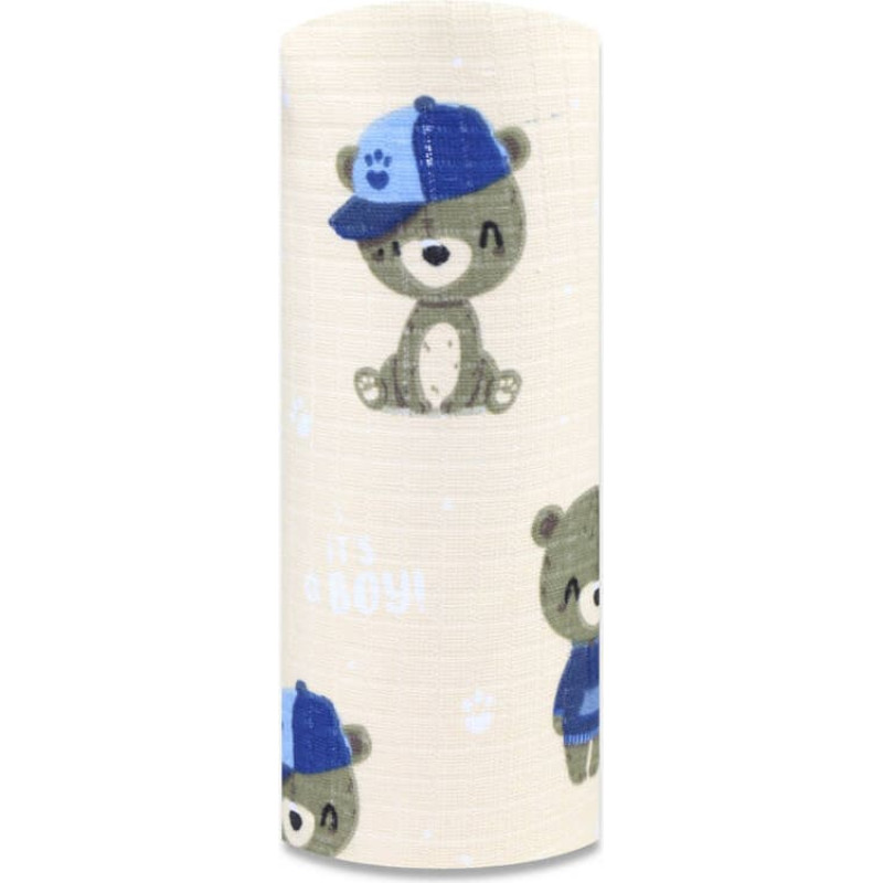 Ega Kids Diaper - 28616 - TETRA PRINT - EGA - BEAR in HAT - ECRU - size 70x80 cm