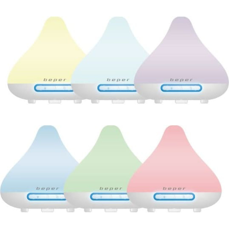 Eterinių aliejų difuzorius   Minimalistinės formos Essence difuzorius su ultragarsiniu purkštuvu ir 7 spalvų LED lempute nuolat kintančiomis spalvomis. Įrengtas mygtukas, skirtas pasirinkti šaltų garų intensyvumą ir mygtukas, skirtas pasirinkti vieną spalvą. Automatinis išsijungimas pritrūkus vandens. Bako talpa 140 ml. Komplekte adapteris.   Galia: 12 W