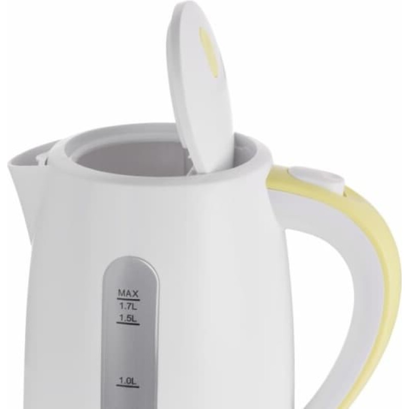 Galia: 1850 – 2200 W Talpa: 1,7 l Korpuso medžiaga: Aukštos kokybės plastikas Apšviestas jungiklis: Taip Saugos sistemos: Automatinis išsijungimas, kai vanduo užverda, Automatinis išsijungimas nuėmus nuo pagrindo, Apsauga nuo įjungimo be vandens Nuosėdų filtras: Taip Spalva: balta Papildomos funkcijos: besisukantis pagrindas, dvipusis vandens lygio indikatorius, plokščias/paslėptas šildytuvas, kabelių laikiklis