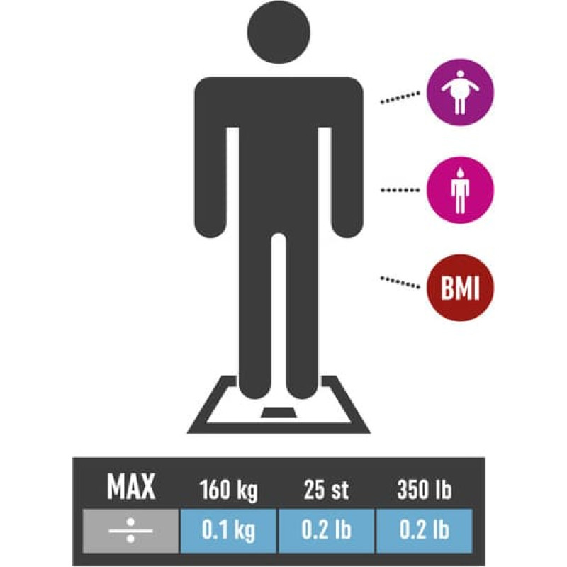 Tipas: Skaitmeninės vonios svarstyklės Kūno sudėties analizė: Taip Neslystantis paviršius: Nr Atminties funkcija: Taip Maitinimas: CR2032 Baterijos Svėrimo matavimas: metrinis ir imperinis Spalva: juoda Plotis: 30,00 (cm) Aukštis: 2,50 (cm) Gylis: 30,00 (cm)