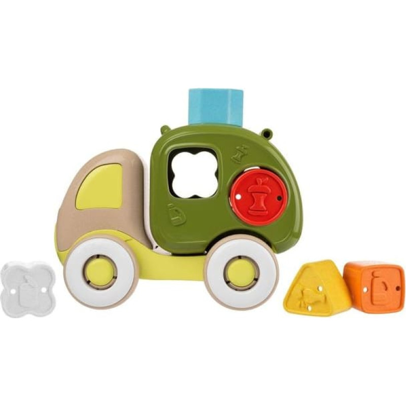 Chicco atkritumu šķirošanas kravas mašīnas – formu šķirotāja komplektā ir rotaļu kravas mašīna un 5 ģeometriskas figūras, kuras bērns var ievietot pareizajā vietā uz kravas mašīnas. Kad visas figūras ir pareizi sašķirotas, iekraušanas zonu var atvērt un figūras izgāzt – šķirošanas prieki sākas no jauna. Šķirojot atsevišķus elementus, jūsu bērns rotaļājoties iepazīst krāsas un ģeometriskās formas. Tas ne tikai trenē smalko motoriku, bet arī kognitīvo uztveri. Šim formu šķirotājam ir īpašā iezīme un pievienotā vērtība: uz visām formām ir attēloti parastie sadzīves atkritumi, un tādējādi rotaļu veidā tiek parādīta ilgtspējīga pārstrādes koncepcija. Atkritumu šķirošanas kravas mašīna – formu šķirotājs ir izgatavots no pārstrādātas plastmasas un šķidrās koksnes. Šī rotaļlieta ir daļa no Chicco ECO+ sērijas.
