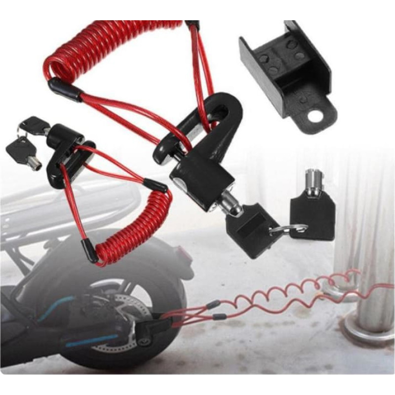Medžiaga: aliuminio lydinys + ABS plastikas Matmenys: 90x60x40 mm / komplektas Grynasis svoris: 0,18 kg / komplektas Spalva: juodas spynos korpusas / spynos rankena + raudona apsaugos viela