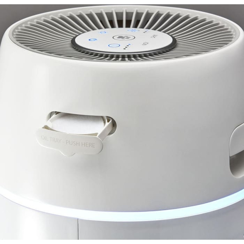 funkcijos Lengviau kvėpuokite: 360 laipsnių tikrasis HEPA filtravimas sumažina ore esančius alergenus, kurių dydis siekia 0,3 mikrono; skirtas dideliems kambariams; kas 12 minučių keičia orą patalpose iki 81 kv. Visiškai švarus: UV-C technologija ir tikrasis HEPA filtras sumažina bakterijas, virusus, pelėsius ir grybus; įjunkite jonizatorių, kad pagerintumėte valymą Puikiai tinka naminių gyvūnėlių savininkams: PetPlus kvapų filtras sumažina kraiko dėžės kvapą, šlapių šunų kvapą, namų ūkio kvapus ir LOJ; išankstinis filtras sulaiko kailį, plaukus ir kitas dideles daleles Individualūs valdikliai: ramiai miegokite su švytinčia naktine šviesa ir automatinio išsijungimo laikmačiu iki 12 valandų; pridėti aromaterapiją su pridedamais eterinių aliejų pagalvėlėmis; pasirinkti iš 3 greičio nustatymų   Pakuotės turinys: (1) „HoMedics TotalClean PetPlus 5-in-1“ oro valytuvas, (1) tikras HEPA filtras su įmontuotu pirminiu filtru ir anglies kvapo filtru, (3) eterinių aliejų padėkliukų padėklas