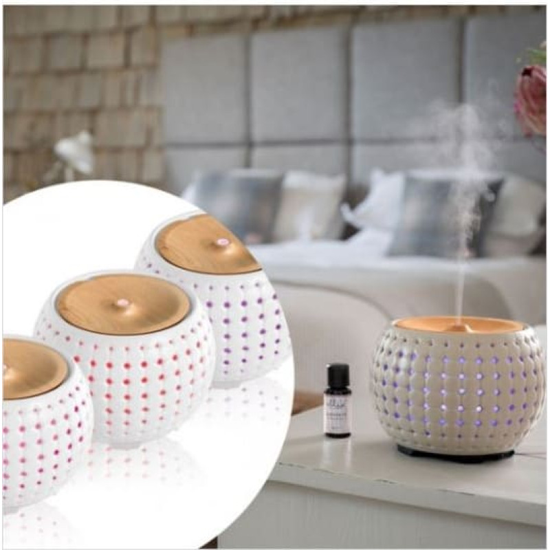 Ultragarsinis aromato difuzorius - skleidžia puikų natūralaus aromato rūką, kad pagerintų jūsų nuotaiką   Natūralios medžiagos - pagamintos iš keramikos ir medžio   Spalvą keičiantis švytėjimas - švelnus švytėjimas sukuria ramią aplinką   Atpalaiduojantys ir pakylėjantys garsai - raminkite savo mintis arba padidinkite energiją   Patogus nuotolinis valdymas - valdymo funkcijos per atstumą   Iki 10 valandų nepertraukiamo veikimo laiko   Maitinimas maitinamas   Galios įvertinimas: 15,6 W   Matmenys (cm): L: 17,5 x P: 27,5 x P: 13,5   Svoris (kg): 1,92