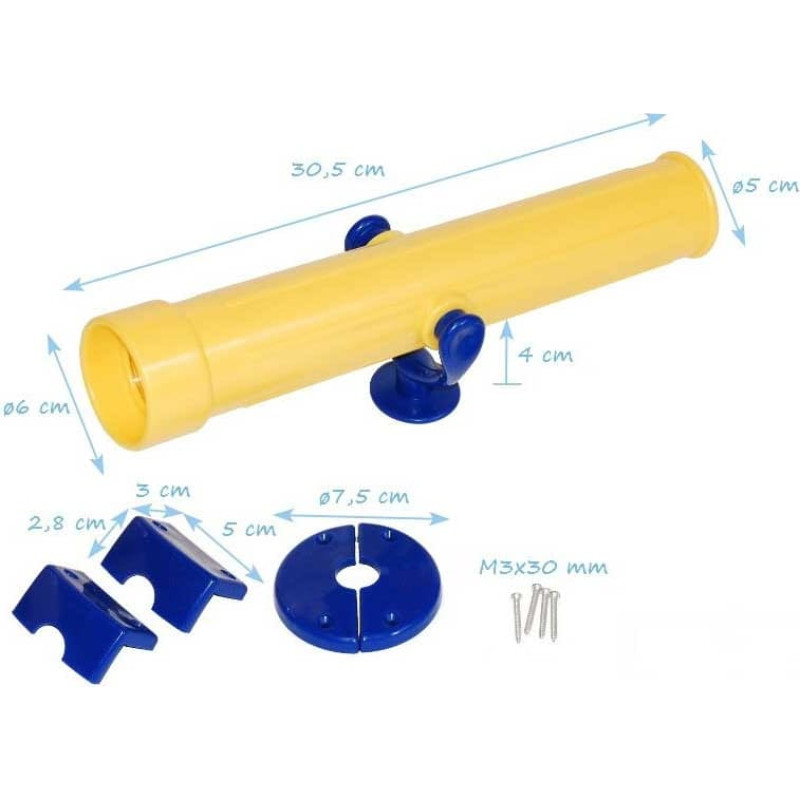 Teleskops ir viena no tām rotaļlietām, kas lieliski papildinās jūsu mājas tuvumā uzstādītos rotaļlaukumus un ļaus radīt visdažādākos rotaļu scenārijus atkarībā no bērnu iztēles. Jūsu bērni varēs ne tikai vērot putnus, bet arī debesis, apgūstot zināšanas par dažādiem debess ķermeņiem! Tehniskie parametri: