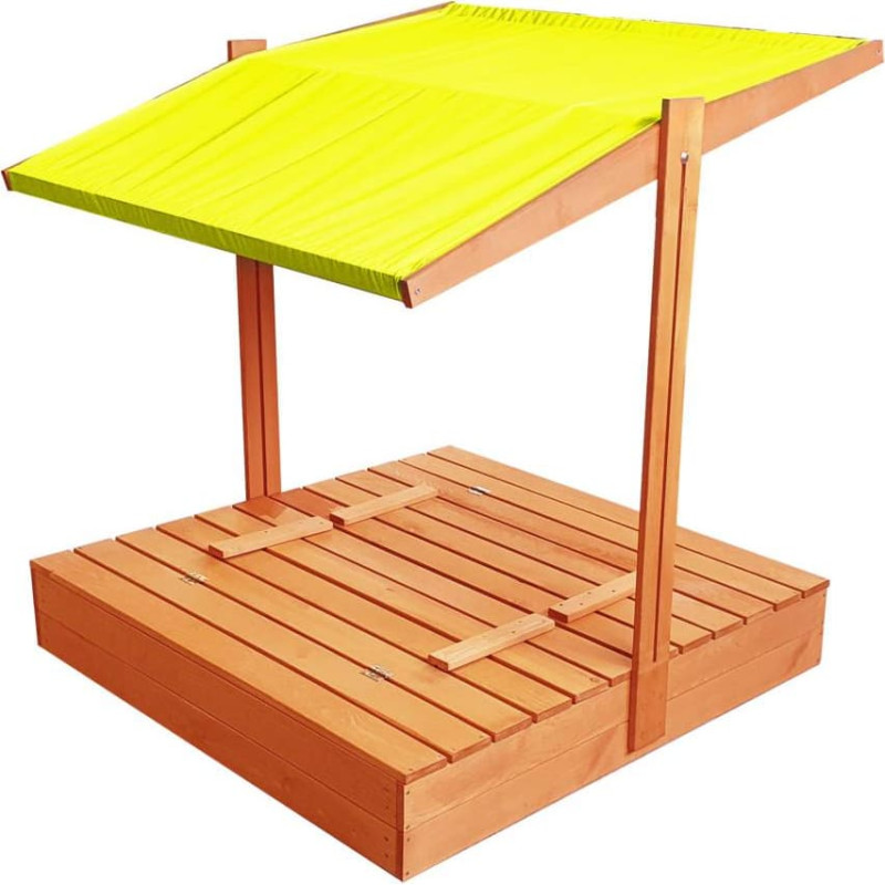 Impregnēta koka smilšu kaste ar dzelteno jumtiņu, 120x120 cm