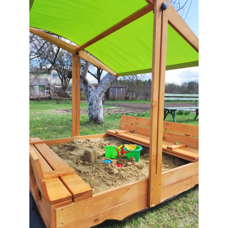 Koka smilšu kaste ar ģeotekstila paklāju Bonus Orbis, 120x120 cm, un 250kg smiltīm Koka smilšu kaste ar ģeotekstila paklāju Bonus Orbis, 120x120 cm, un 250kg smiltīm