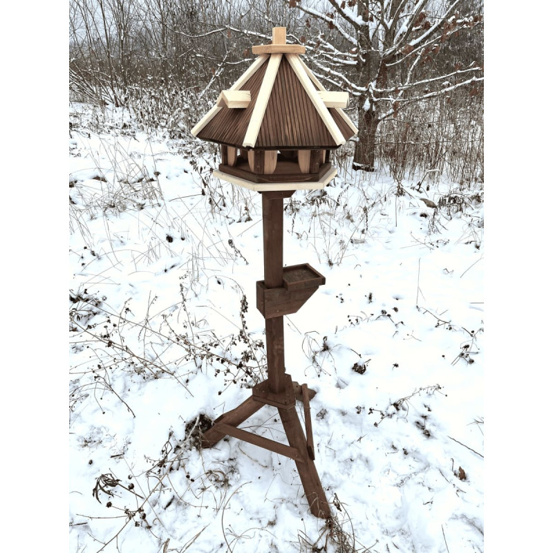 Šī iespaidīga dizaina, apaļo formu barotava piesaistīs putnu uzmanību, izcelsies Jūsu pagalmā vai dārzā, kļūs par lielisku dārza rotājumu un ienesīs pagalmā dzīvību visos gadalaikos. Ikvienam putnu mīļotājam patīk vērot, kā putni barojas. To barošana ir īpaši svarīga aukstajā sezonā, kad putniem īpaši trūkst barības. Izturīga un videi draudzīga putnu barotava no skujkoku koksnes, izturīga pret laikapstākļiem un var tik lietota visos gada laikos. Barotavai ir liela platforma un jumts, lai barība būtu sausa. Vienkārši ievietojiet nedaudz barības, tad putni priecāsies un atlidos uz to katru dienu! Barotava ir samontēta un gatava lietošanai. Izmērs 40 x 34 x 39 cm
