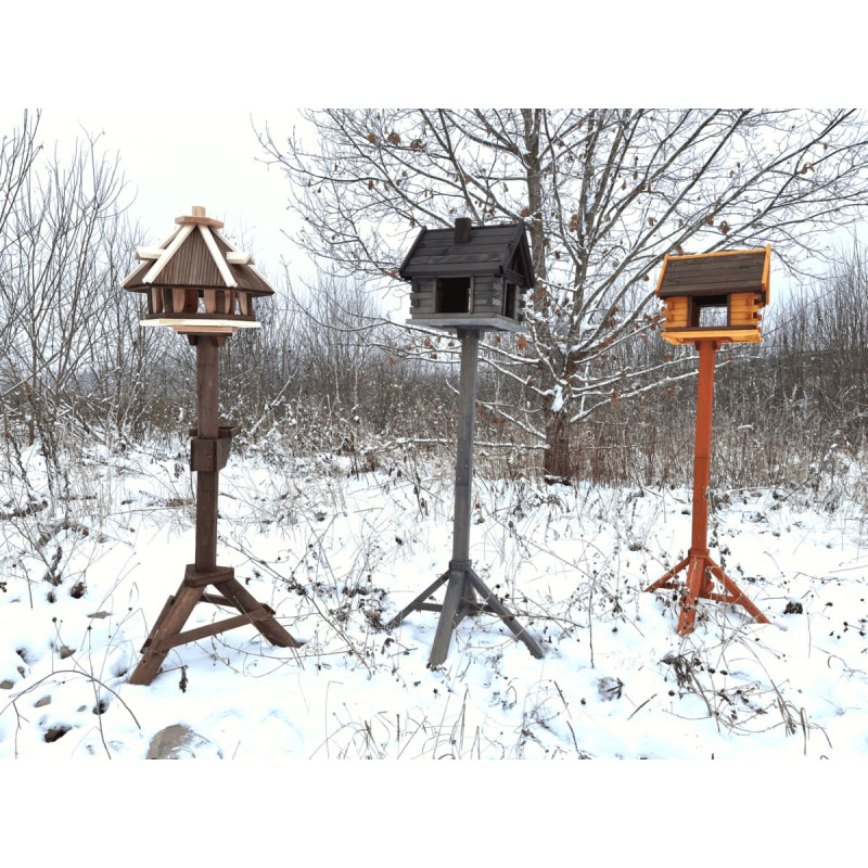 Vērojiet putnus savā dārzā! Koka statīvs ļaus novietot barotavu jebkurā vēlamajā vietā. Uz speciāla statīva piestiprinātā barotava palīdzēs pasargāt putnus no mājdzīvniekiem, kā arī ļaus ar baudu vērot, kā putni izklaidējas. Izturīgs un stabils koka statīvs var stāvēt uz jebkura pamata. Izgatavots no impregnētas koksnes, viegli un ātri montējams. Statīvs ir lieliski piemērots dažāda izmēra barotavām un putnu mājiņām. Augstums: 110 cm Augšējās pamatnes izmēri: 19x12 cm Kājas garums: 69 cm