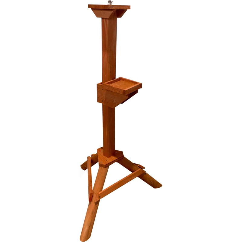 Vērojiet putnus savā dārzā! Koka statīvs ļaus novietot barotavu jebkurā vēlamajā vietā. Uz speciāla statīva piestiprinātā barotava palīdzēs pasargāt putnus no mājdzīvniekiem, kā arī ļaus ar baudu vērot, kā putni izklaidējas. Izturīgs un stabils koka statīvs var stāvēt uz jebkura pamata. Izgatavots no impregnētas koksnes, viegli un ātri montējams. Statīvs ir lieliski piemērots dažāda izmēra barotavām un putnu mājiņām. Augstums: 116 cm Augšējās pamatnes izmēri: 14x14 cm Plaukta izmēri: 14,5x14,5 cm Statīva augstums: 70 cm