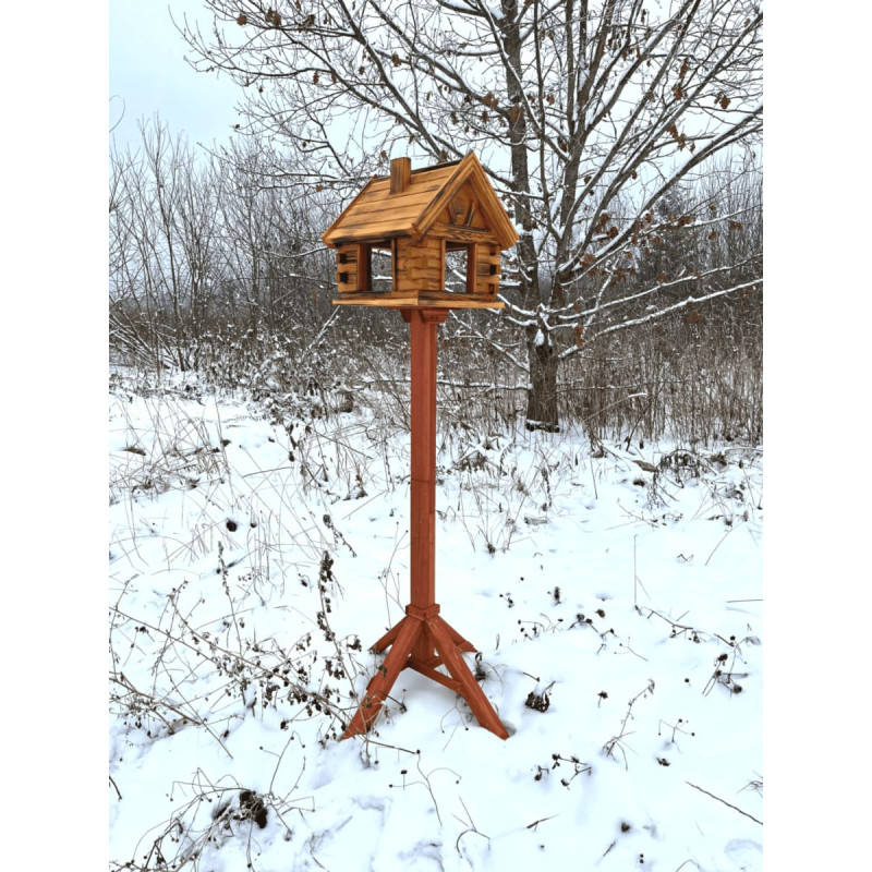 Vērojiet putnus savā dārzā! Koka statīvs ļaus novietot barotavu jebkurā vēlamajā vietā. Uz speciāla statīva piestiprinātā barotava palīdzēs pasargāt putnus no mājdzīvniekiem, kā arī ļaus ar baudu vērot, kā putni izklaidējas. Izturīgs un stabils koka statīvs var stāvēt uz jebkura pamata. Izgatavots no impregnētas koksnes, viegli un ātri montējams. Statīvs ir lieliski piemērots dažāda izmēra barotavām un putnu mājiņām. Augstums: 110 cm Augšējās pamatnes izmēri: 19x12 cm Kājas garums: 69 cm