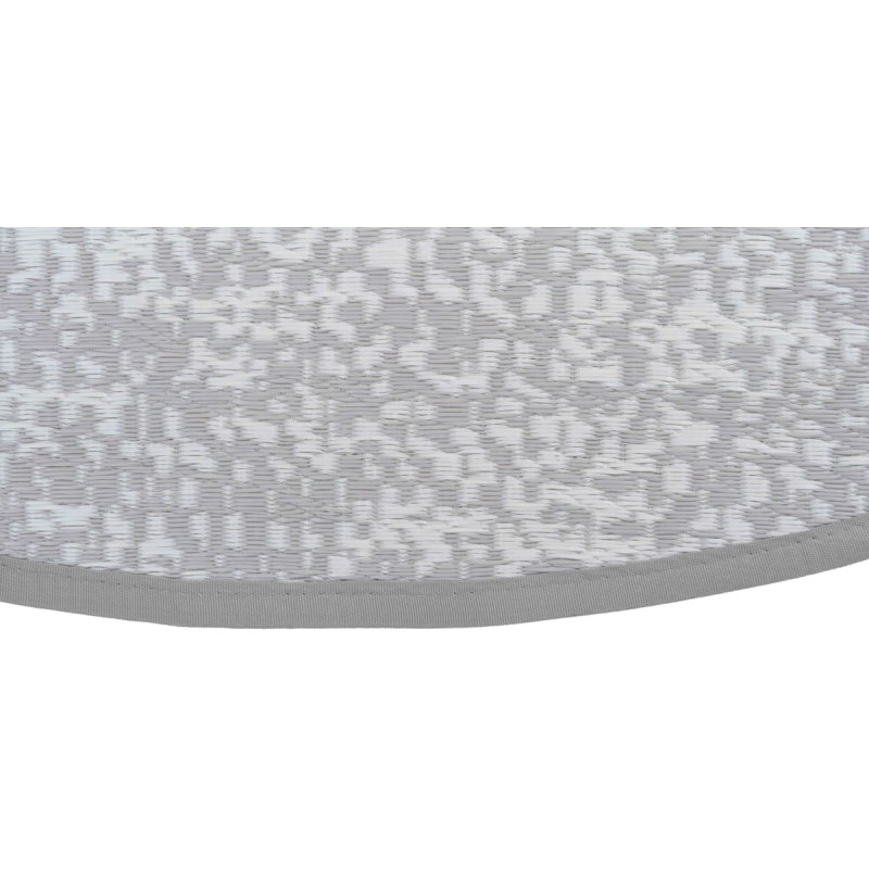 Liels, apaļas formas āra paklājs, kas būs lielisks akcents terases vai balkona interjeram. Šī paklāja patīkamā virsma, maigās krāsas un raksti var būt piemēroti visdažādākajiem interjeru stiliem un mājas videi. - Paklāja izmērs: 180 x 180 x 1,72 cm - Izgatavots no 400 g/m2 polipropilēna - Pelēks/ gaiši pelēks