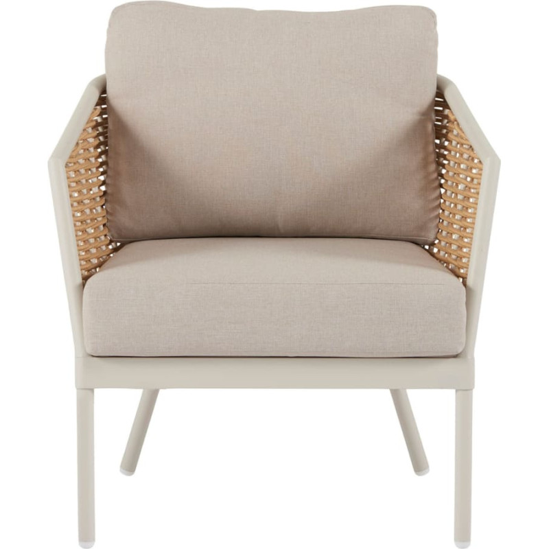 Daniela četru daļu āra mēbeļu komplekts ar spilveniem - tiem, kam patīk ērti atpūsties svaigā gaisā. Šīs āra mēbeles apvieno funkcionalitāti un stilu, lai jūs varētu brīvdienu laikā atpūsties, ilgi sarunāties un baudīt laiku uz terases. Tas lieliski iederēsies dažādu stilu interjerā un noteikti iepriecinās jūs un jūsu viesus. Četru daļu āra mēbeļu komplekts sastāv no galda, dīvāna, diviem ērtiem krēsliem un 7 spilveniem dīvānam un krēsliem. Mēbeles ir izgatavotas no izturīgiem un ilgmūžīgiem materiāliem. Pareizi kopjot, mēbeles varēsiet lietot gadiem ilgi. Ja mēbeles tiek izmantotas ārpus telpām, mēs iesakām tās nesezonas laikā pārklāt vai uzglabāt telpās. - Galda izmērs: 120 x 60 x 43 cm - Krēsla izmērs: 74 x 76 x 73 cm - Dīvāna izmēri: 167 x 76 x 72 cm - Sēdekļa augstums: 45 cm - Sēdekļa dziļums: 64 cm - Sēdekļa platums: 153 cm - Sēdekļa platums: 60 cm - Rokturu augstums: 63 cm - Ieteicamā slodze: līdz 240 kg - Ieteicamā slodze vienam krēslam: līdz 120 kg - Mēbeļu krāsa: bēša/ gaiši pelēka - Dīvāna spilvenu izmēri: 73 x 42 x 20 cm - Krēsla spilvenu izmēri: 56 x 43 x 20 cm - Spilvena biezums: 13 cm - Poliestera spilveni, kas izgatavoti no 220 g/m2. - Spilvena krāsa: gaiši pelēka/bēša Uzmanību! Āra mēbeles tiek piegādātas nesamontētas.