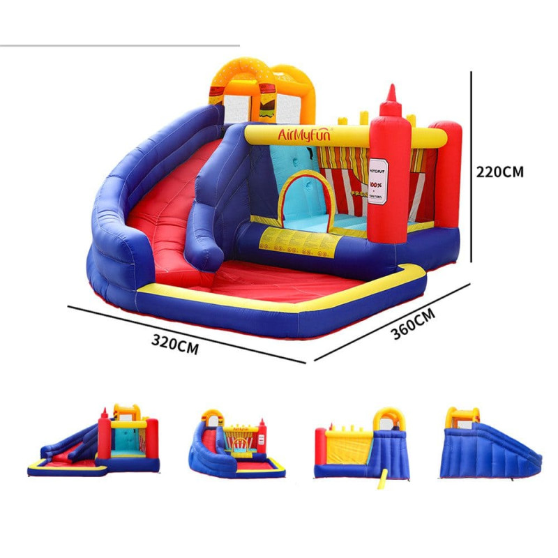 Vai vēlaties, lai jūsu dārzā bērniem būtu atrakcija, kas ļaus stundām ilgi spēlēties svaigā gaisā? Šis batuts ir lieliski piemērots tematiskām privātām ballītēm un citiem bērnu pasākumiem! Ar batutu varēsiet īstenot visus rotaļu scenārijus, garantējot smieklus, jautrību un aktīvu izklaidi. Batutam ir slidkalniņš, kāpšanas siena, bumbiņu baseinsun vieta lēkšanai. Drošiem lēcieniem mēs iesakām izmantot ar tīklu. - Barošanas avots 450 W pastāvīgas plūsmas elektriskais gaisa pūtējs (iekļauts komplektā) - Izgatavots no izturīga un ilgmūžīga PVC materiāla 420D+840D - Drošības tīkls - Viegli uzstādāms un samontējams - Piepūšas dažu minūšu laikā - Piemērots lietošanai gan telpās, gan ārpus tām - Maksimālā kopējā slodze: 135 kg - Ieteicams 3 spēlētājiem vienlaicīgi, bērniem no 3 gadiem - Izmēri: 360 x 320 x 220 cm Komplektā: - Elektriskais gaisa pūtējs - Enkuri stiprināšanai pie zemes - Materiāli bojājumu lāpīšanai - Liels batuta glabāšanas mais - Montāžas instrukcija Atbilst Eiropas rotaļlietu drošības standartiem EN71, EN60335, EN62233 un Amerikas ASTM standartiem.