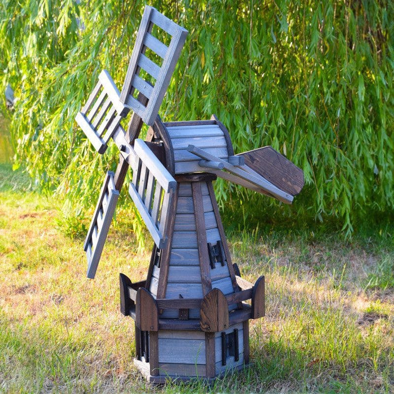Koka dekorācija “Vējdzirnavas” piešķirs šarmu, mājīgumu un kļūs par rotu Jūsu pagalmā vai dārzā. Šis dekors ir lielisks elements mājīgas vides radīšanai. To var novienot dārzā, pagalmā, bērnu rotaļu laukumā, izrotāt tūrisma vai komercobjektus. Dzirnavas ir piemērotas arī bērnu izglītojošiem nolūkiem – vējdzirnavu kupols automātiski pagriežas vēja virzienā. Spārni, kas novietoti uz gultņa, vēja laikā griežas. Iekšpuse ir tukša, tāpēc, novietojot tās uz tam piemērotas āra lampas, var izveidot mājīgu un ekskluzīvu apgaismojumu.