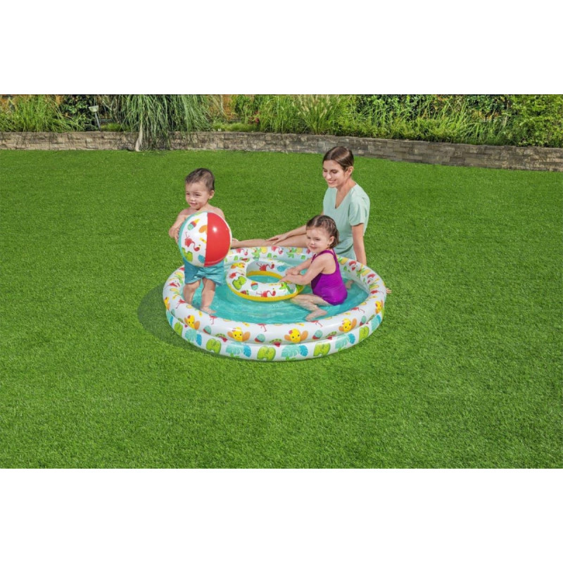 Bestway 51124 Zestaw Basenik dmuchany do pływania 1.22m x 20cm, Koło 46cm, Piłka 27cm