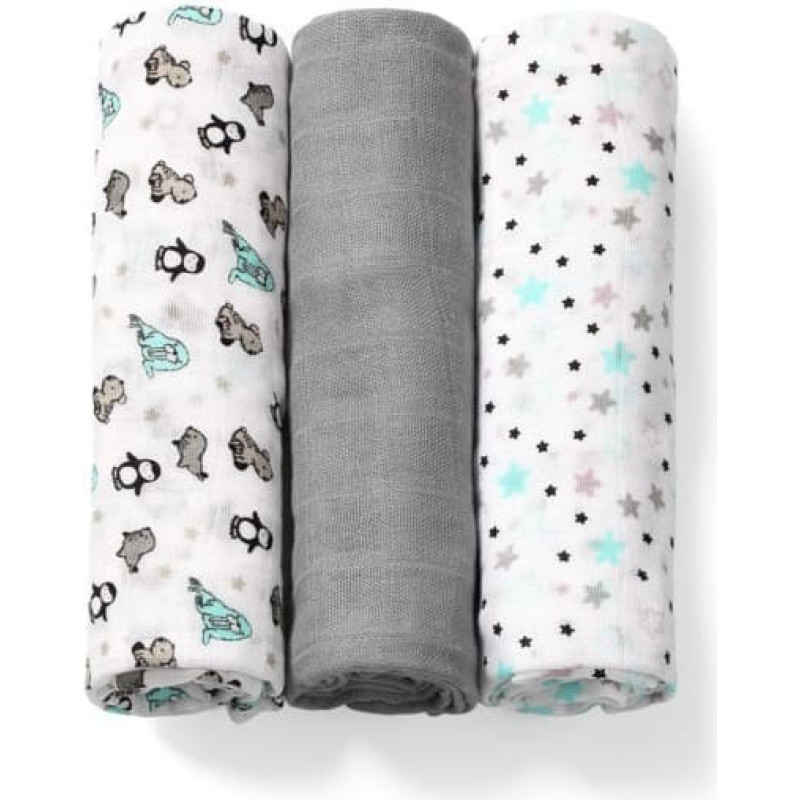 Babyono Art. 397/02 marlinių vystyklių rinkinys, 3 vnt., su piešiniais, 70 × 70 cm