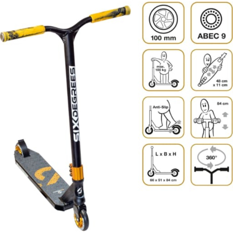 360° stūre, 51 cm pastiprināts alumīnija stienis, 84 cm stūre, papildu rokturis ar virpuļrokturiem