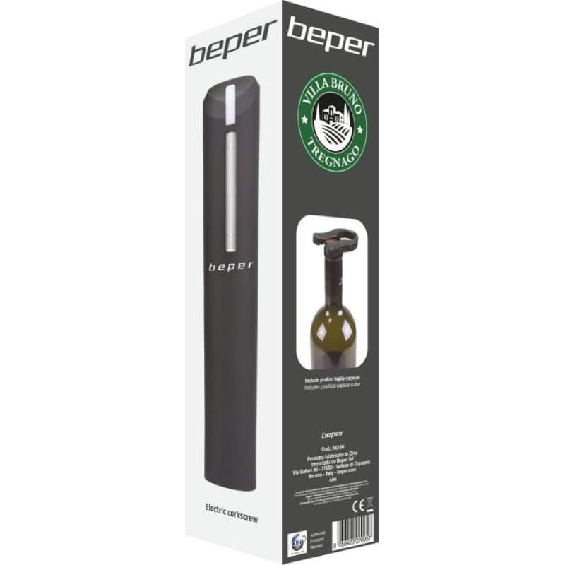 Elektrinis kamščiatraukis, skirtas lengvai ir greitai atidaryti vyno butelius. Idealiai tinka tiek kamštiniams, tiek plastikiniams dangteliams, leidžia atkimšti iki 80 butelių tiesiog palietus mygtuką. Gaminys aprūpintas praktišku kapsuliniu pjaustytuvu ir LED operacine lempute. Korpusas su neslystančia minkšta danga.   Baterija 4xAA Pakuotės dydis 7x7x26,8 cm Bendras svoris 0,35 kg