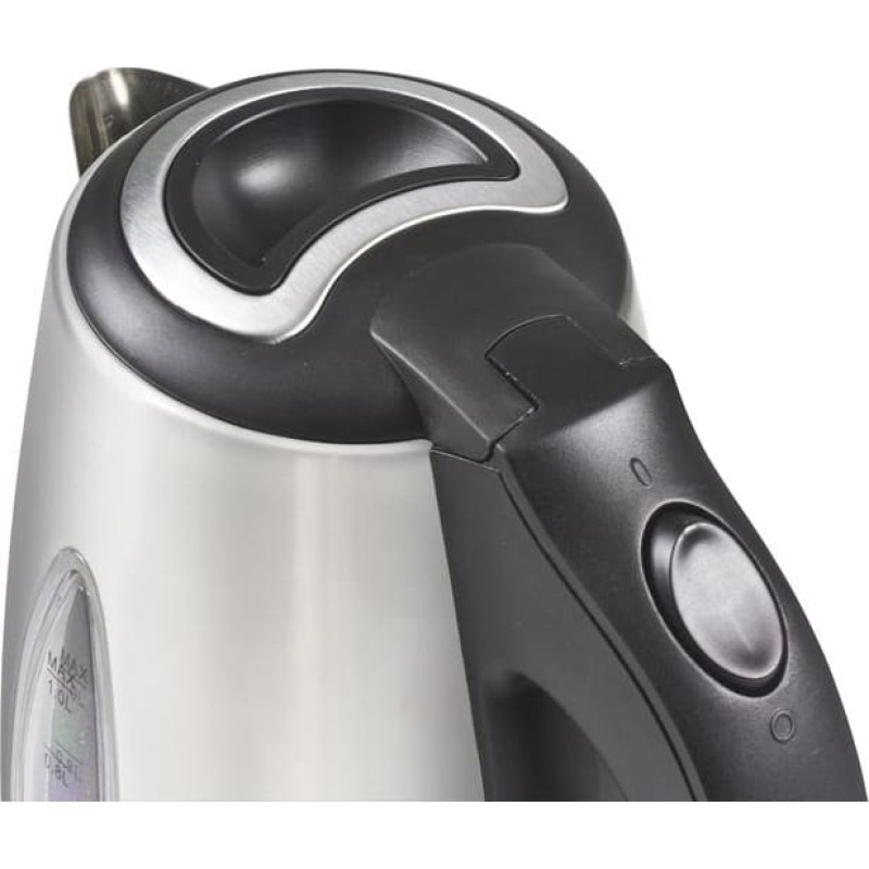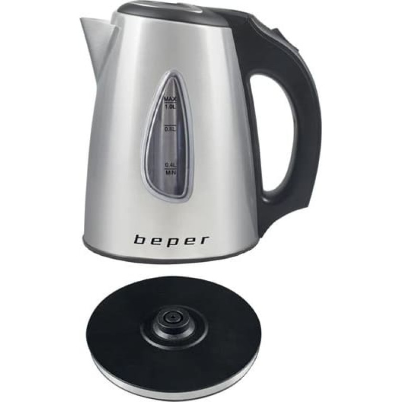1 L plieno elektrinis virdulys leidžia paruošti iki 4 puodelių arbatos ar kitų karštų gėrimų. Filtras yra nuimamas ir turi vandens lygio indikatorių. Jame įrengta apsauga nuo perkaitimo. Paslėptas šildymo elementas, mėlyna veikimo lemputė ir 360 ° besisukanti bazė su laido valytuvu.   Galia: 1630 W Pakuotės dydis: 21,5x15x20,5 Svoris: 0,94 kg