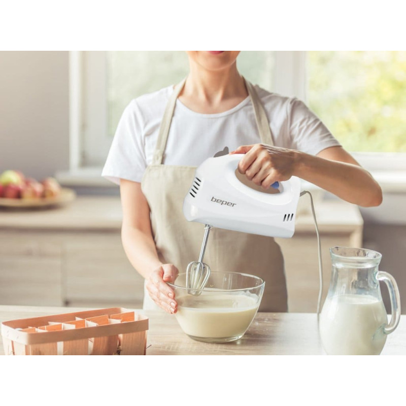 Rankinis maišytuvas   Lengvas elektrinis rankinis plaktuvas, idealus kiaušiniams plakti ir kremams bei saldumynams maišyti. Maišytuvas turi 5 pasirenkamus greičius ir pridedama pora nerūdijančio plieno plaktuvų plakimui ir maišymui. Plaukai nuimami šluotelės atleidimo mygtuku ir plaunami indaplovėje. Ergonomiška rankena patogiam suėmimui.   Gaminio dydis: 7,5 x 15,5 x 24,5 cm Medžiaga: ABS Galia: 150 W