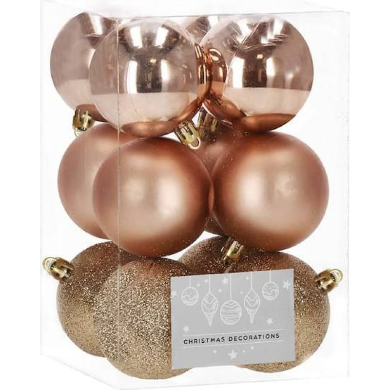 Parametrai: Prekinis ženklas: Springos Spalva: rožinis auksas Medžiaga: plastikas Kiekis: 12 vienetų niekučių Raštai: matiniai, blizgantys, blizgūs Privalumai: nedūžtančios, NEMOKAMAI pakabinamos virvelės Į komplektą įeina: 4 gabalėliai blizgančių niekučių 6 cm 4 gabalėliai matinių niekučių 6 cm 4 gabalėliai blizgių niekučių 6 cm