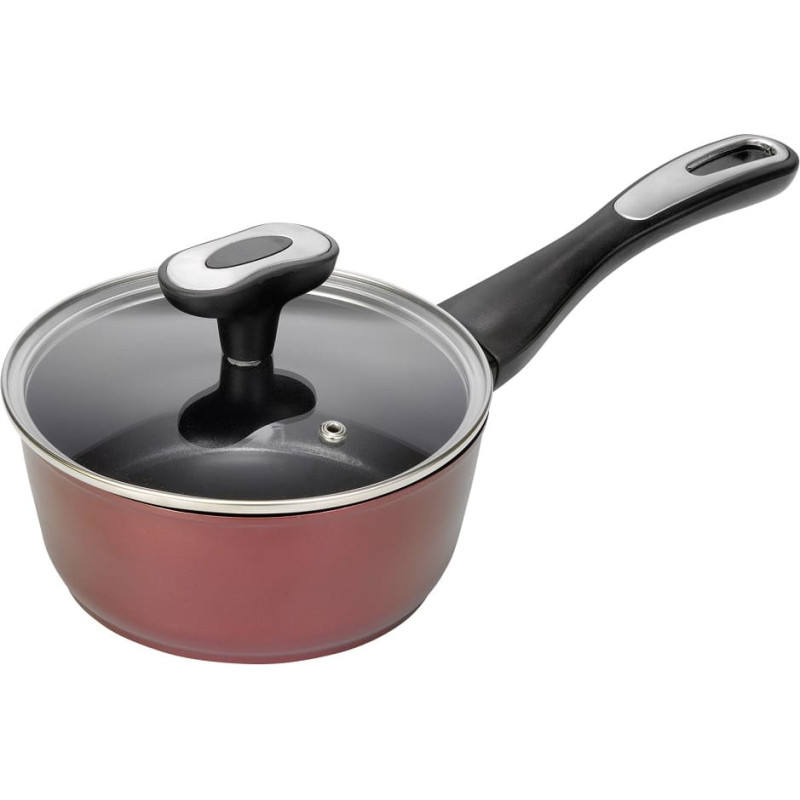 „Whitford QuanTanium®“ 3 sluoksnių nelipni danga, pagaminta be PFOA. „Visiškos indukcijos“ apačia. Skersmuo 130 mm. Puikios šilumos savybės. 3 mm. aliuminio kaltas korpusas. Ugniai atspari rankena. Apsauginis komplektas. Tinka visoms viryklėms, įskaitant indukciją. Padažas 16 cm. su grūdinto stiklo dangčiu. Aukštis 7 cm. Talpa 1,1 l.